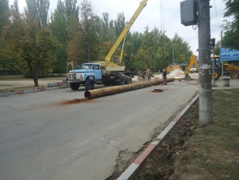 На бульваре 30-летия Победы продолжаются работы по замене коллектора. Сегодня работники КП "Водоканал" извлекли еще одну часть водопроводной магистрали, по которой вода поступает в наши дома.