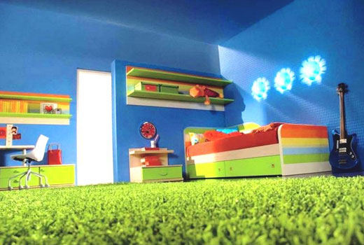 Особенно комфортный, уютный, теплый материал для детской. Недостатки - ковролин может быть безвозвратно испачкан (например, краской), собирает пыль, впитывает влагу. Поэтому ковровые покрытия лучше стелить в комнатах детей постарше или особо аккуратных.
