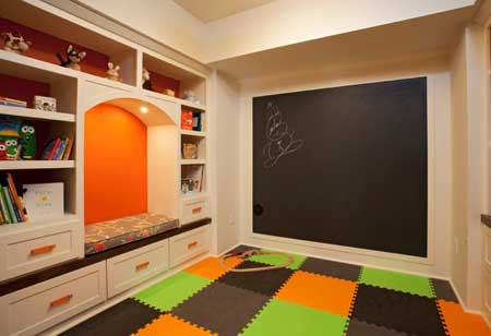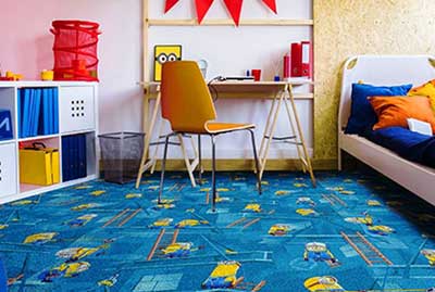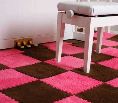 Удобство ковровой плитки заключается в том, что с помощью нее можно создать на полу интересный рисунок, дорожки или же разделить комнату на различные игровые зоны.
