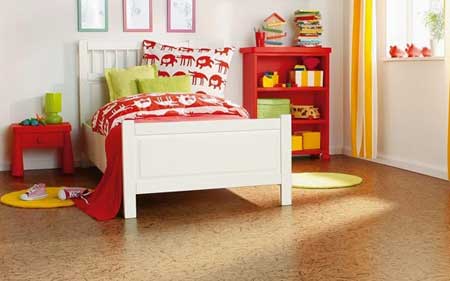 Пробковое покрытие - отличный вариант для детской комнаты, так как его изготавливают из коры пробкового дерева и это на 100 процентов натуральный продукт. Вместе с привлекательным и оригинальным внешним видом данное покрытие обладает природной теплотой, поэтому пол в детской всегда будет иметь комфортную температуру - ребенок сможет ходить по нему босиком, не рискуя простудиться. Пробка даже теплее, чем паркет. Стоит отметить также мягкость пробки, которая приносит не только приятные ощущения при ходьбе, но и обеспечивает низкую травмоопасность. При этом она достаточно стойкая к ударам, царапинам и прочим детским шалостям.