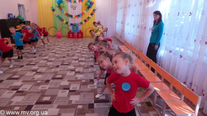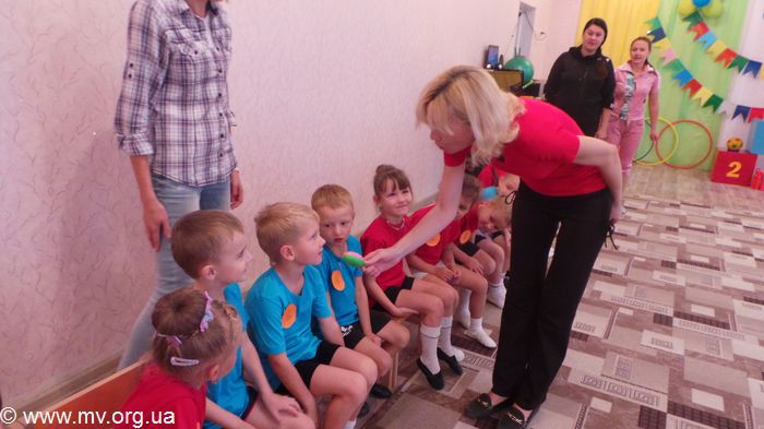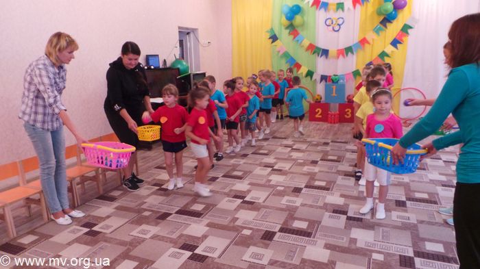28 пятилетних малышей составили две команды и приступили к веселым конкурсам.