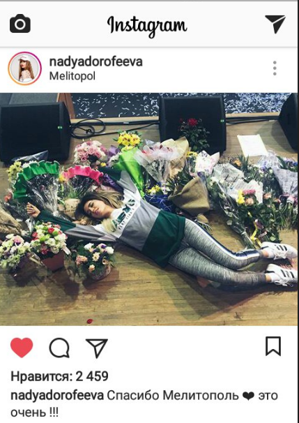 После выступления певица группы Надежда Дорофеева поделился позитивными впечатлениями от концерта, выложив фото в Интраграме с подписью «Спасибо Мелитополь. Это очень!!!»