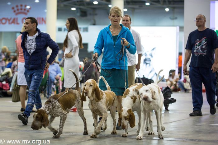 Судьи оценивают внешний вид, насколько соответствует собака породе. У Алисы короткая шерсть, а вот хозяева длинношерстных собак потрудились серьезно, взяв на вооружение специальные шампуни, присыпки, расчески и щетки. Результаты впечатляли! Например, мы видели очаровательных пекинесов, в Мелитополе таких не встретишь: казалось, летело золотое облако на поводке. Настолько облик собаки отвечал ее названию («пекинес» в переводе означает «солнечный шар»)! Запомнились афганские борзые с длинной струящейся шерстью, большие кудрявые черные терьеры. Редко в жизни приходилось видеть ирландских волкодавов - это собака-великан, одна из самых крупных в мире. Мы - постоянные участники выставок, повидали немало. Но на «Евро Дог шоу» было много пород, с которыми до сих пор никогда не сталкивались, даже названия пород я не знала.
