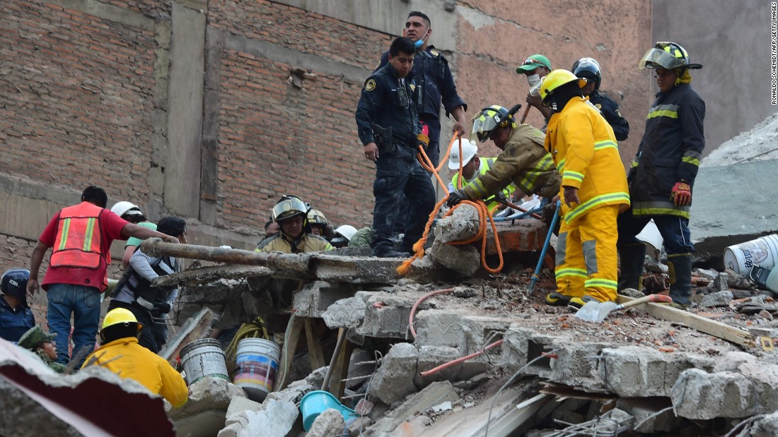 Мэр столицы Мигель Анхель Мансера заявил, что 44 здания серьезно повреждены или разрушены землетрясением, в том числе жилые дома и школы. Также произошло несколько значительных утечек газа и пожаров. От землетрясения с магнитудой 7,1 больше всего пострадали жители Мехико и прилегающих районов.