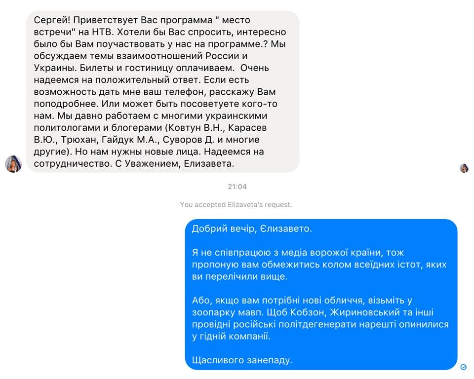 В свою очередь другие журналисты и общественные деятели сообщили, что к ним также обращались с предложением принять участие в пропагандистском шоу.