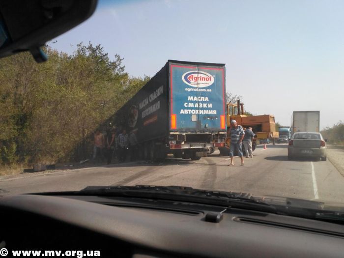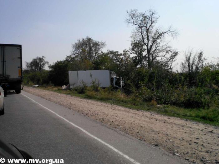 Приблизительно в 35 км от Мелитополя на запорожской трассе произошло ДТП - не разминулись грузовой "Спринтер" и пикап.