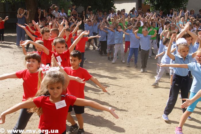 На этой неделе в большинстве мелитопольских школ прошли праздничные мероприятия, посвященные дню города. Многие организаторы к традиционным выступлениям учеников добавили и флешмобы. Один из них прошел сегодня в начальной школе № 17.