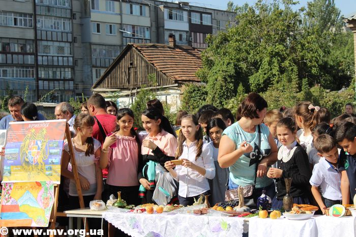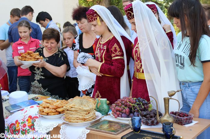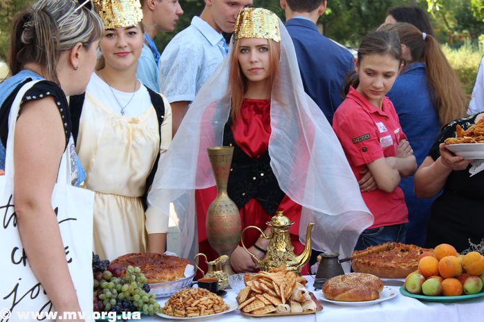 В Мелитополе проживает более ста национальностей, и каждая сумела сохранить свою аутентичность, традиции, национальные особенности и кухню. Конечно, охватить все народности школьники не могли, но основные выделили. На празднике были представлены украинцы, болгары, евреи, крымские татары, белорусы, армяне и другие.