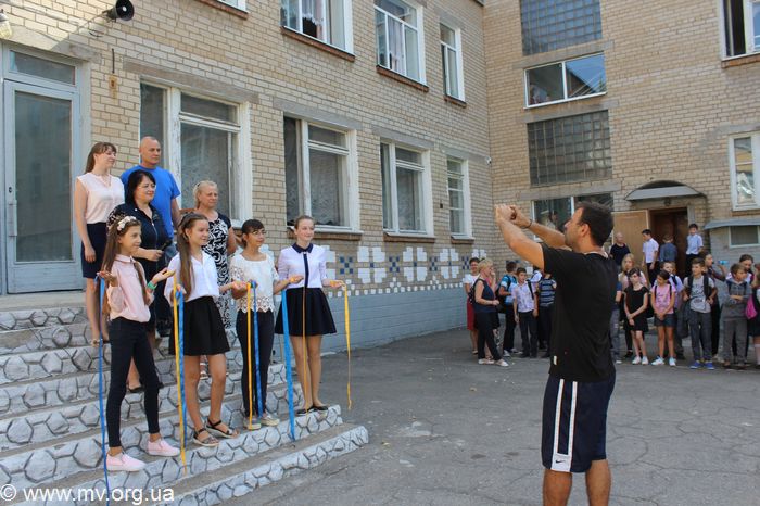 На большой перемене во дворе школы собрались все классы от мала до велика. В первую очередь директор школы Наталья Коваль поздравила всех с наступающим Днем рождения родного Мелитополя: