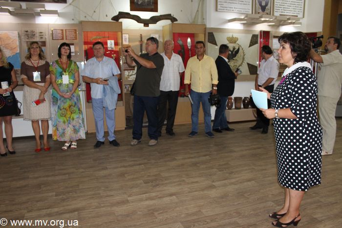 Музейщики вручили всем присутствующим маленький подарок - буклеты с информацией о городах-побратимах и радушная хозяйка, директор музея Лейла Ибрагимова пригласила гостей в зал археологии, где только в этот день 22 сентября проходит выставка одного дня "Скифские сокровища Мелитопольщины". С огромным удивлением и интересом рассматривали гости нашего города скифские золотые украшения, которые были найдены в 1951 году в знаменитом Мелитопольском скифском кургане. Они смогли убедиться, что Мелитополь - город с древней и богатой историей.