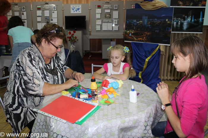 Педагоги изобразительного искусства городских школ наносили на лица и руки детей и взрослых аквагрим. Это стало прекрасной возможностью для детворы почувствовать себя сказочным героем, украсить лицо узорами, попасть в атмосферу ярких красок и праздника. Руководители кружков Мелитопольской станции юных техников дали мастер-классы по моделированию, созданию объемных цветов и животных из картона и разноцветной бумаги.