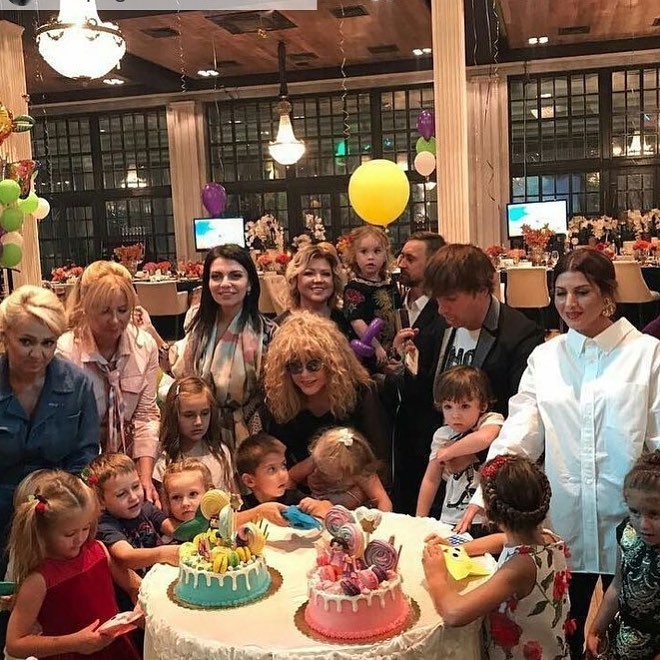Звездные супруги устроили веселый праздник с участием аниматоров. Поздравить Лизу и Гарри приехали Яна Рудковская, певица Жасмин, Марина Юдашкина, Игорь Николаев с женой и дочерью и другие.