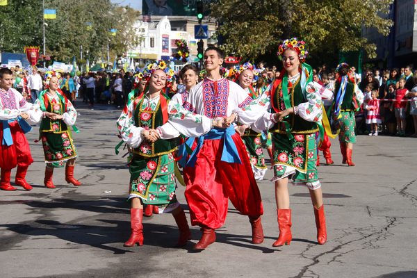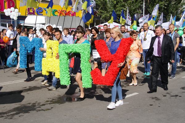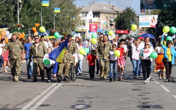 Что продемонстировали на торжественном шествии? Замшелые костюмы из ДК и культпросвета? Нет, я понимаю, если бы реально было что праздновать. Все таки в основе праздника города, если кто помнит и кого мозги еще не ускакали, лежит День Машиностроителя, который с 1966 года проводился в последнее воскресенье сентября. А какие ПЭРЭМОГЫ демонстрировали сейчас? "Мимо трибун, с зажравшимися ворами и их холуями, движется колона студентов, подневольно выполнившая норматив по покраске туалетов в жовто-синий цвет" ? Замечательный праздник. Проводите уже карнавал, как в Бразилии, тогда все костюмчики, танцы и пляски будут оправданы. Могу даже предложить название : " Праздник когда просрали все".