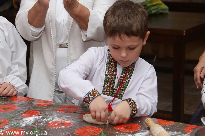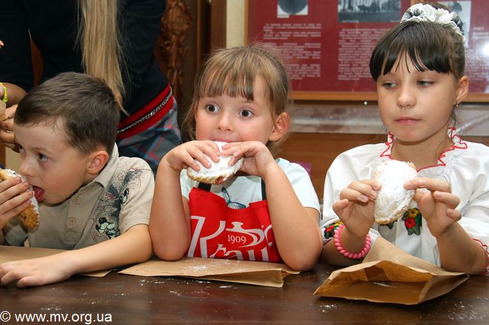 Сначала бабушка София со своими помощницами помогла ребятне слепить из кусочков теста настоящие караимские пирожки с фруктовой начинкой и научила "вязать" караимскую косичку на "гребешке" пирожка. С каким увлечением и старанием дошколята и школьники раскатывали тесто, лепили пирожки, украшали их и ставили из теста свою личную отметину, чтобы узнать свой пирожок после выпекания!