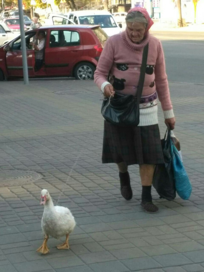 В местных соц сетях было опубликовано фото, на котором была запечатлена местная жительница с необычным домашним питомцем. Пожилая женщина выгуливала на поводке утку.