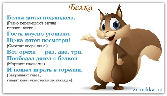 Гимнастика для глаз, предназначенная для выполнения младшими школьниками и детьми, посещающими детский сад, может включать элементы игры. Существует гимнастика для глаз в стихотворном виде, которую можно выучить и делать вместе с малышом.