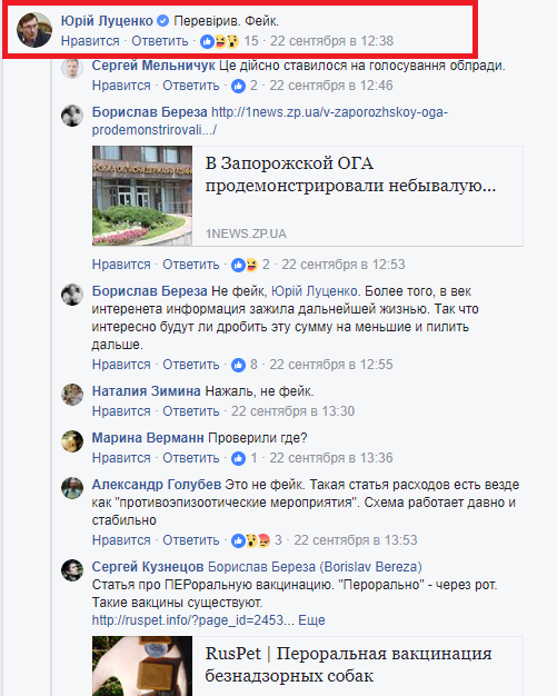 Пока в Госпотребслужбе просто отмалчивались, о скандале в Запорожье узнали далеко за пределами и области да и всей страны. Нардеп Украины Боррислав Береза сообщил, что его иностранные партнеры стали выражать обеспокоенность по поводу бешенства лиц, которых вакцинируют за 5 миллионов евро. К проблеме подключились другие депутаты, журналисты и чиновники, а генпрокурор Украины Юрий Луценко даже не поврел своим глазам и компетентно заявил, что это фейк.