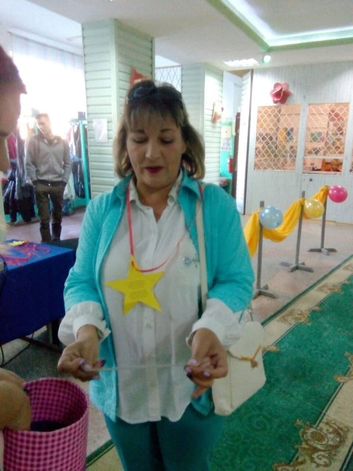 Учителя получили от своих воспитанников медали в виде звезд (на фото - учитель начальной школы Подгайная Рита Викторовна). А потом смогли узнать свое будущее - каждому предлагалось выбрать записку с предсказанием.