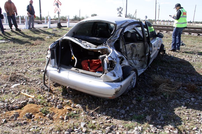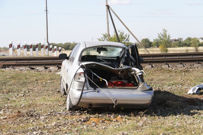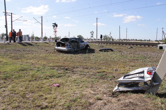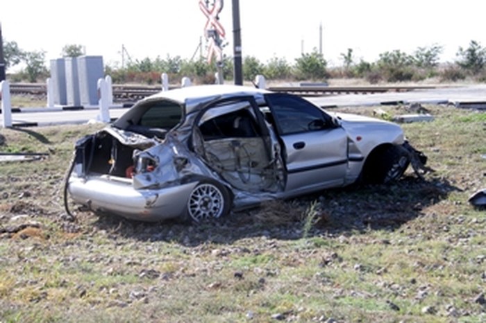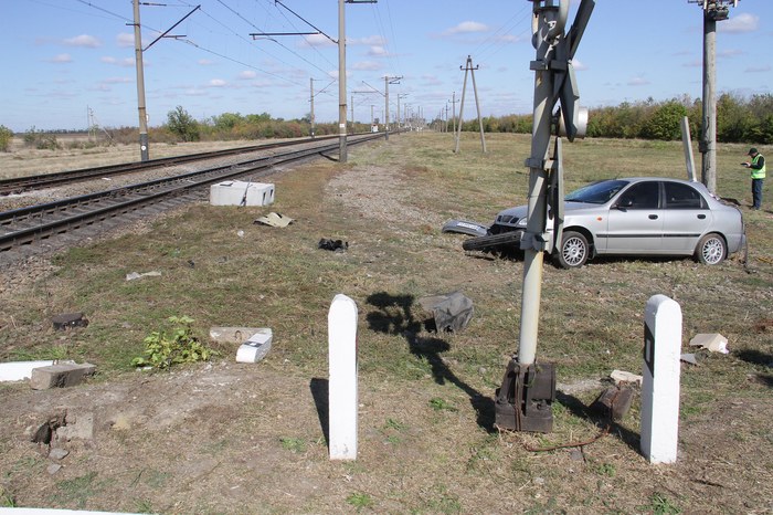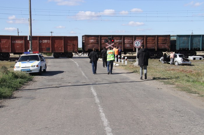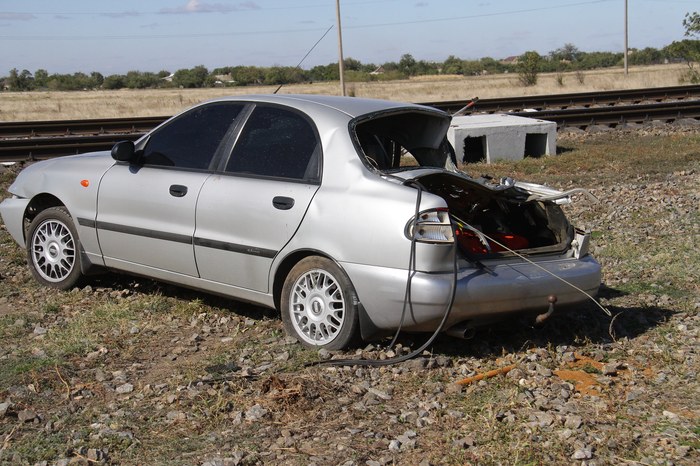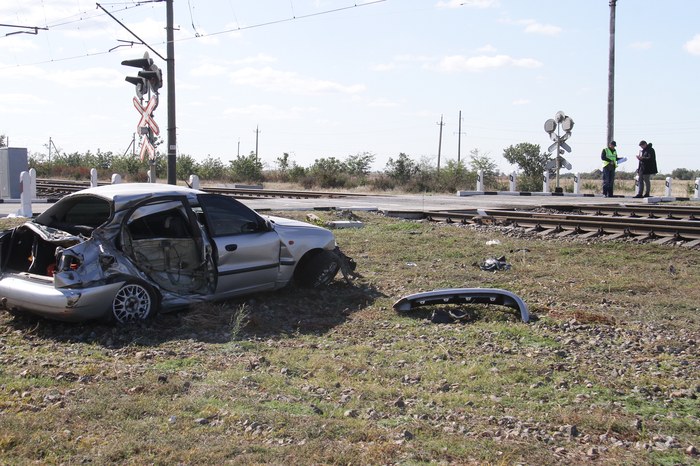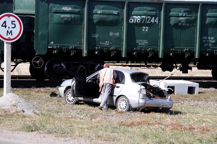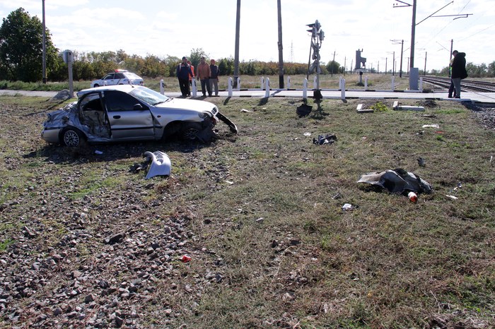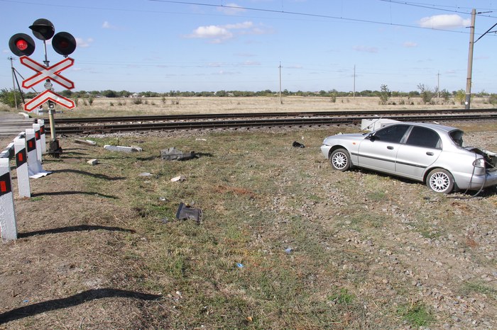 Как рассказали очевидцы, происшествие произошло примерно в 09.20. Автомобиль ехал со стороны села, и, несмотря на запрещающий сигнал семафора, перед переездом скорость не сбавлял. В результате двигавшийся со стороны Мелитополя локомотив протаранил заднюю часть машины. Автомобиль сбросило с рельсов и развернуло на 180 градусов.