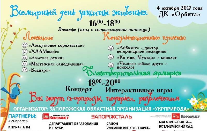 Завтра, 4 октября, в Запорожье пройдёт празднование международного Дня защиты животных. В честь этого действа в городе проведут целый масштабный праздник.