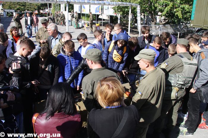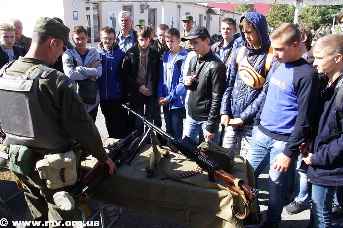 - Мероприятие посвящено Дню защитника Отечества, что празднуется 14 октября. Мы рассказали ребятам о задачах, которые выполняет наше подразделение и показываем образцы вооружения и техники - пистолеты, гранатометы и техника высокой проходимости, - говорит замкомандира мелитопольского батальона НГУ Александр Черевко. И пользуясь случаем просит поблагодарить город за постоянную помощь части в бытовых вопросах.