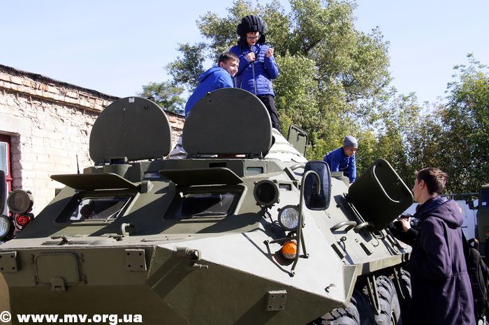 Ребята с огромным интересом рассматривали огнестрельное оружие, желающие (а желали все) могли разобрать-собрать автоматы и пистолеты, изучить, что внутри БТР и посидеть в кабине КрАЗа.