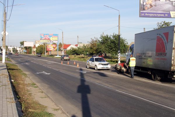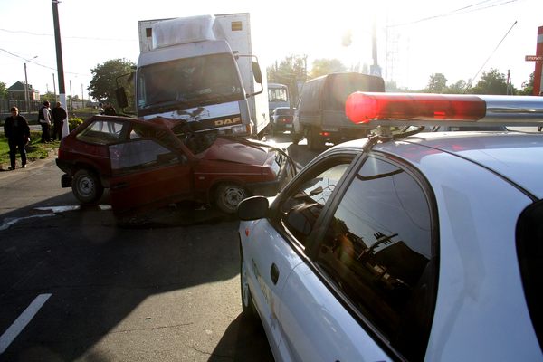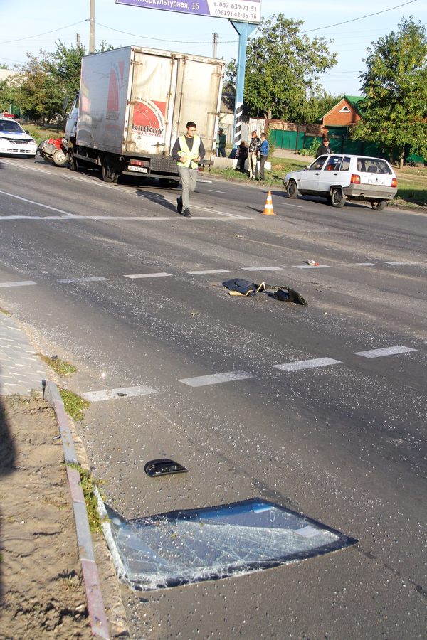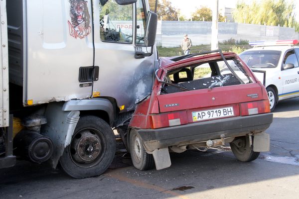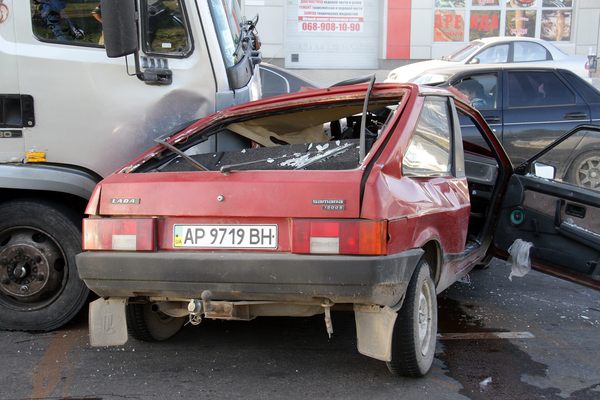 По словам очевидцев, легковушка двигалась со стороны улицы Белякова и выскочила на перекресток с пр. Б. Хмельницкого. Грузовик «Даф» двигавшийся по проспекту с юга ударил «восьмерку» в борт и протащил ее несколько метров. Водитель легковушки госпитализирован. На мете происшествия работает полиция.
