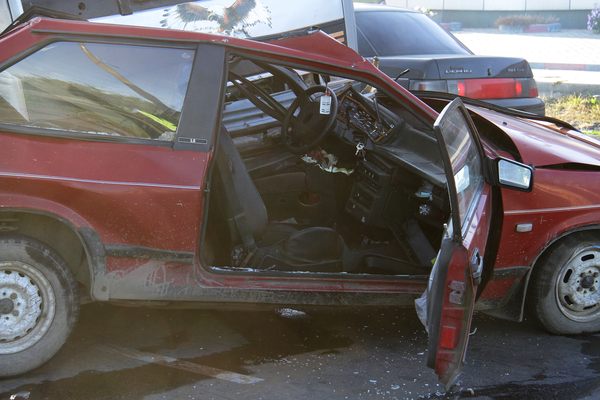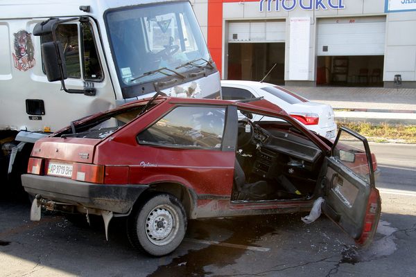 На южном выезде из города произошло ДТП с пострадавшими . Многотонный грузовик протаранил автомобиль «ВАЗ-2108».