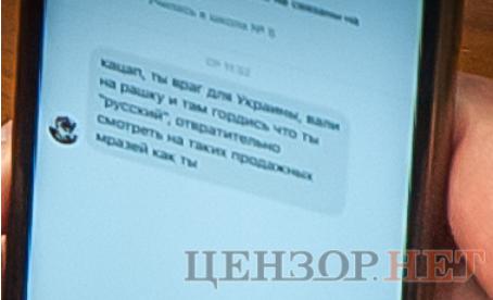 "Кацап, ты враг для Украины, вали на рашу и там гордись что ты "русский", отвратительно смотреть, а таких продажных мразей как ты", - такую смс получил нардеп "оппоблока" Евгений Балицкий, которому вчера отключили микрофон за выступление на русском языке.