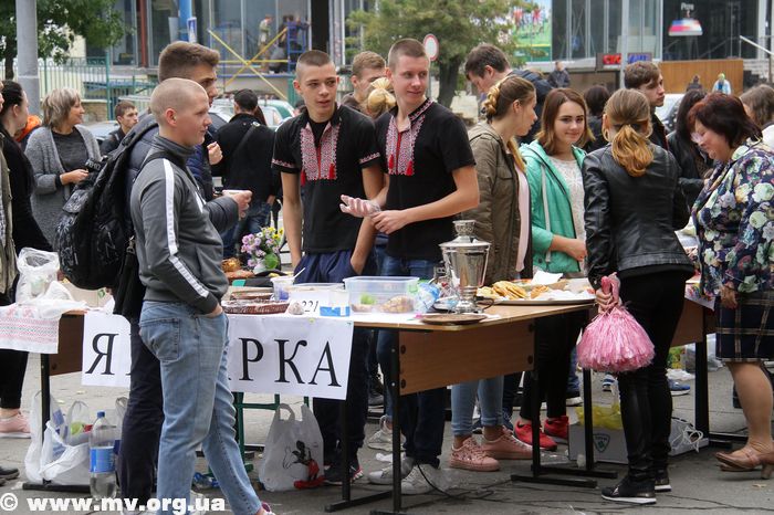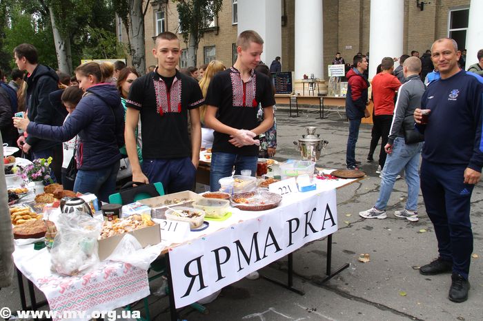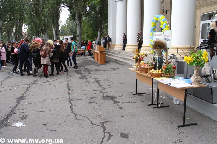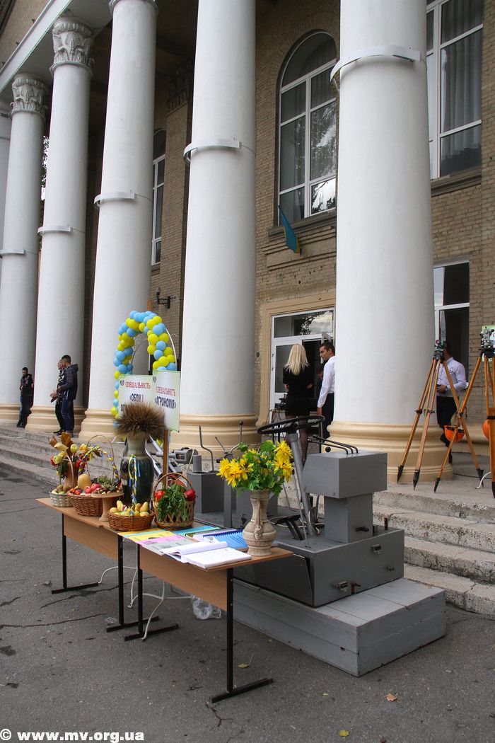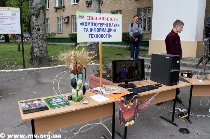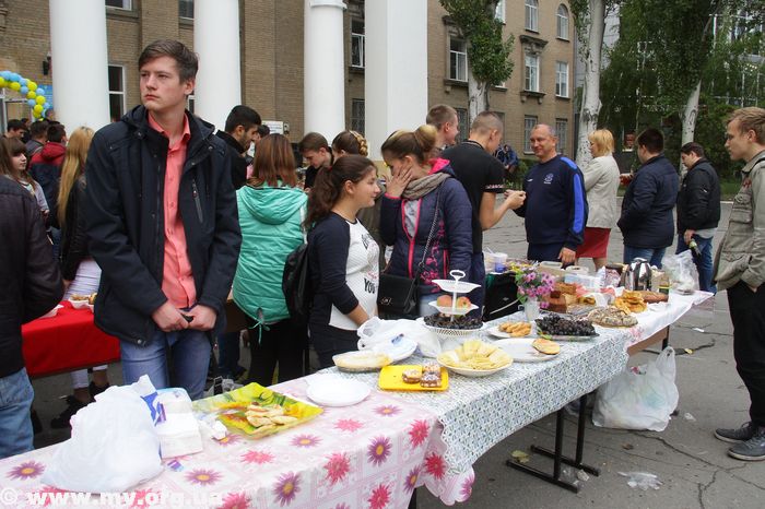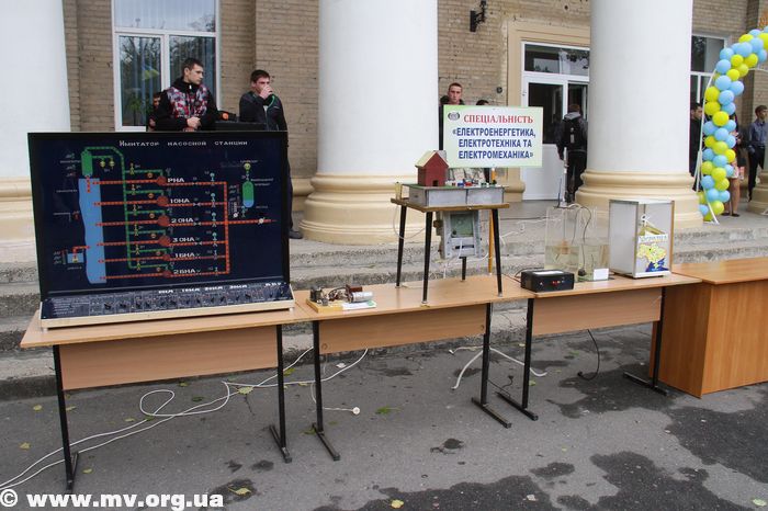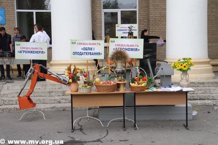 Сегодня в связи с праздником около здания учебного заведения проходило массовое действо. Во-первых, была организована небольшая выставка. На ней были представлены основные атрибуты, с которыми приходиться работать студентам той или иной специальности: различная электроника, техника и продукты сельхоздеятельности.