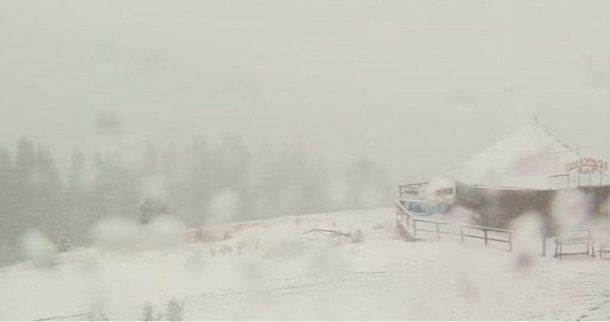 Также снег зафиксирован на популярном туристическом курорте Буковель.