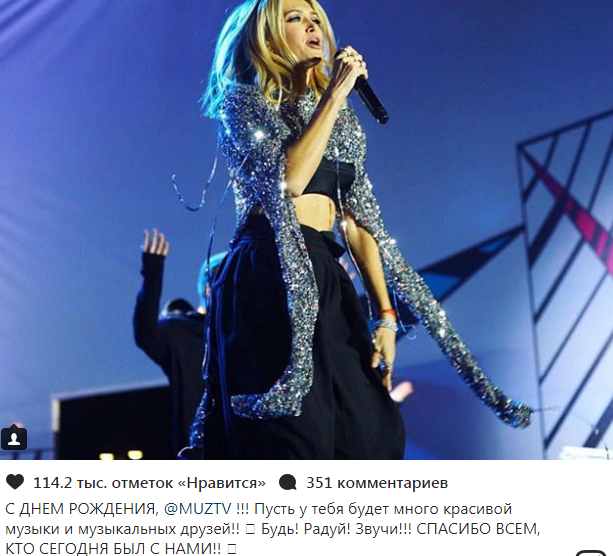 "С днем рождения, МУЗ-ТВ! Пусть у тебя будет много красивой музыки и музыкальных друзей! Будь! Радуй! Звучи! Спасибо всем, кто сегодня был с нами!" - написала артистка, не жалея смайликов с сердечками.