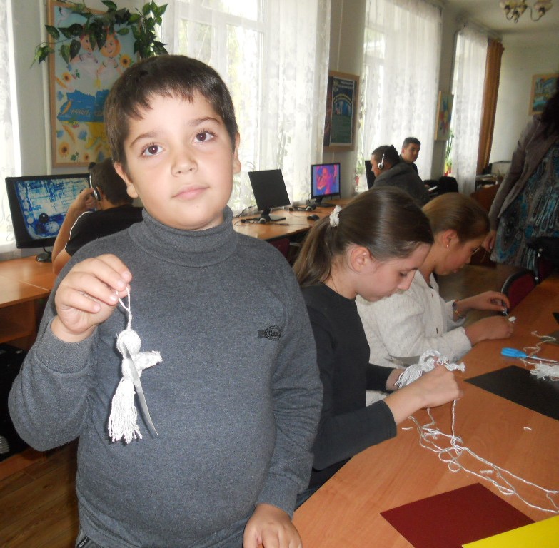 Накануне Дня защитника Украины в библиотеке им. М. Горького воспитанники Центра семейного досуга своими руками смастерили крошечных ангелочков, которые станут оберегами для наших воинов.