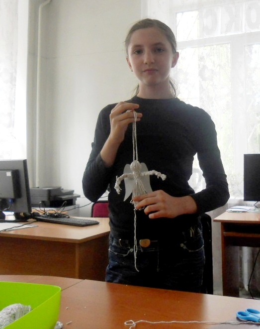 Участники мастерской старательно работали, вкладывая в свою работу всю душу, зная, что каждый их оберег найдет своего хозяина-бойца. А он, в свою очередь, будет чувствовать себя увереннее и защищеннее. Поэтому, наверное, куклы-обереги с серебристыми крыльями получились очень красивыми.