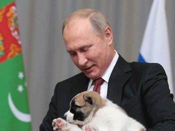 Президент Туркмении Гурбангулы Бердымухамедов поздравил российского коллегу Владимира Путина с прошедшим днем рождения и подарил ему щенка алабая.
