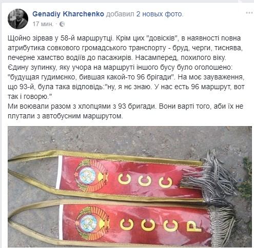 К тому же в салоне маршрутки Харченко обнаружил вымпелы с надписью «СССР» и советским гербом. Геннадий советскую атрибутику сорвал.