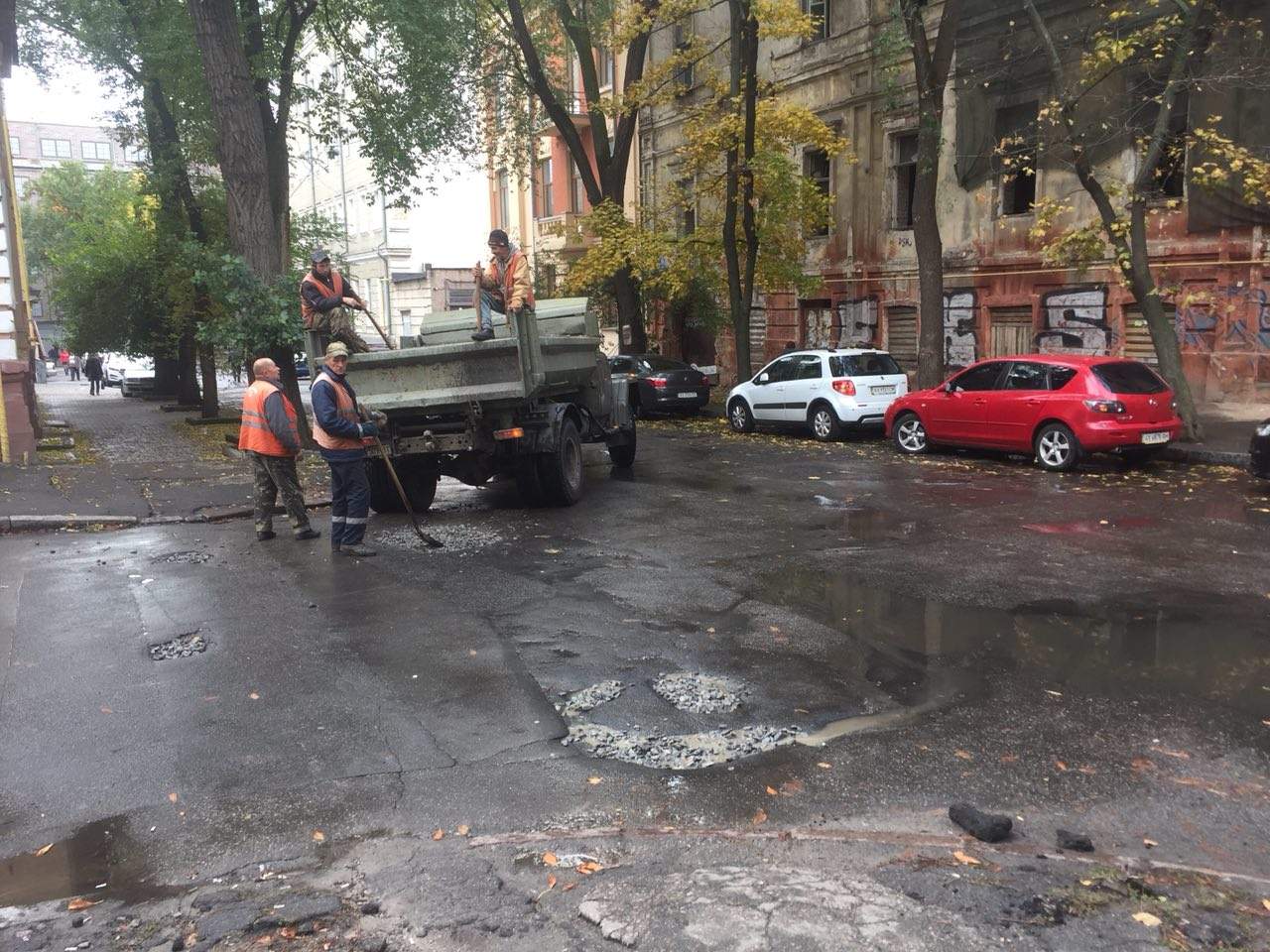 На фото видно, как дорожные работники засыпают в ямы щебенку, после того как прошел дождь, и ямы полные воды. При этом, как пишет в паблике, в Харьков направляется консул Польши. Возможно, такой оперативный ремонт связан именно с этим, но это пока неизвестно.