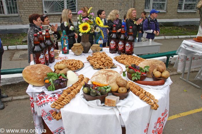 А казаки прошли проверку на прочность и смекалку в конкурсах "Умелый наездник", "Шаровары атамана", "Дары осени", "Попасть в цель", "Сильная рука", "Перетягивание каната". Жюри определяло места каждого куреня в конкурсах, а они превращались в звонкую монету: три монетки за первое место, две за второе, одна - за третье. В конце конкусной программы из мешков куреней достали моенты и пересчитали. Оказалось, что "Казаки" заняли тертье место, а у куреней "Калина" и "Джура" - одинковое количество монет. Пришлось определять победителя в подтягивании. И победу здесь одержали казаки из куреня "Калина". Им и вручили в качестве приза знатное угощенье: каравай хлеба, вкусные соленья,осенние овощи и домашнуюю колбасу. Казаки куреня "Джура", ставшие вторыми на играх, угощались салом, а ребята из куреня "Казаки" - брынзой. Всем же без исключения участникам вручили утешительные квас и баранки. Что же касается конкурса на приготовление самого вкусного кулеша, то наградами были отмечены все казачки, потому что каждый кулиш был отменным. Не смогли определить самый-самый даже опытные хозяйки-подопечные территориального центра соцобслуживания населения. О великолепных вкусовых качествах свидетельствовала и скорость поедания кулешей зрителями.