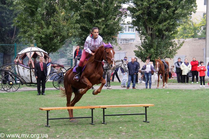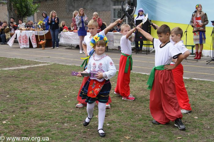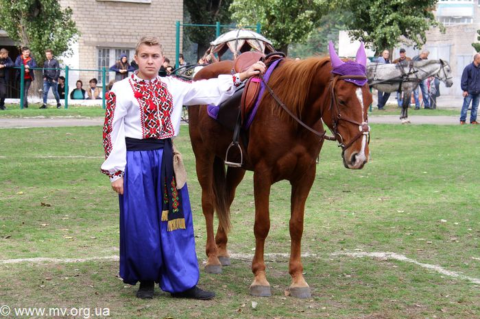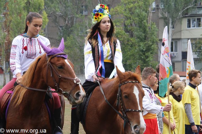 Зрелищности колонне добавили красавицы-наездницы на конях из конно-спортивного клуба "Свобода" и карета, в которой везли маленьких казачат - воспитанников Мелитопольского областного приюта для детей. Детвора разыграла перед зрителями хореографическую композицию "Казаки" и подарила вокальный номер - песню "В чистом поле". Гости мероприятия - танцоры ансамбля "Отрада" Детской школы искусств (рук. Елена Радалова) выступили с красочным номером "Цвети, Украина!" Заместитель директора центра по воспитательной работе Олеся Дорохова поблагодарила детей, вручила им благодарности и передала сладкие гостинцы.