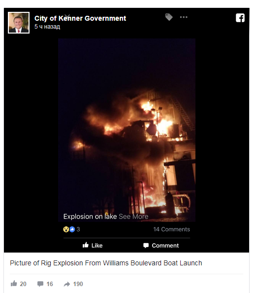Инцидент произошел ночью 15 октября на нефтяной вышке на озере Пончартрейн.