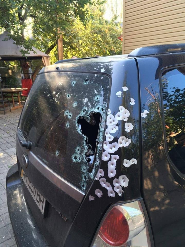 По информации пресс-службы ГУНП, на месте продолжаются следственные мероприятия. Пока еще неустновленным оружием в автомобиле "Субару Форестер" разбито заднее стекло справа.