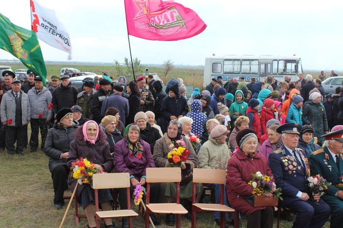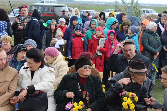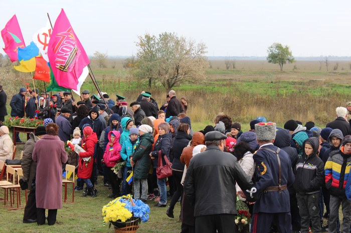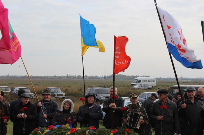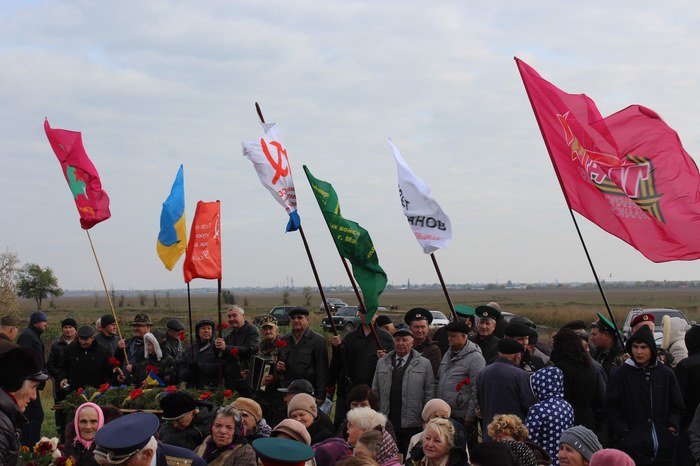 Ветеранам – самое большое уважение, ведь они единственные, кто сидел на митинге. Слева от ветеранов выстроились школьники местной мордвиновской школы, справа – гости из Мариуполя вместе с политиками, чиновниками, активистами. На ветру реют десятки флагов – два государственных, один – Мелитопольского района, а остальные – это флаги Мелитопольского полка азовских казаков, ветеранских организаций района и ветеранов Мариуполя. Этому приморскому городу всегда уделяется много внимания во время проведения мероприятий по освобождению Мелитопольщины, потому что войска, освобождавшие наш район, состояли в основном из призывников из Мариуполя. И полита наша земля кровью мариупольцев тоже щедро…