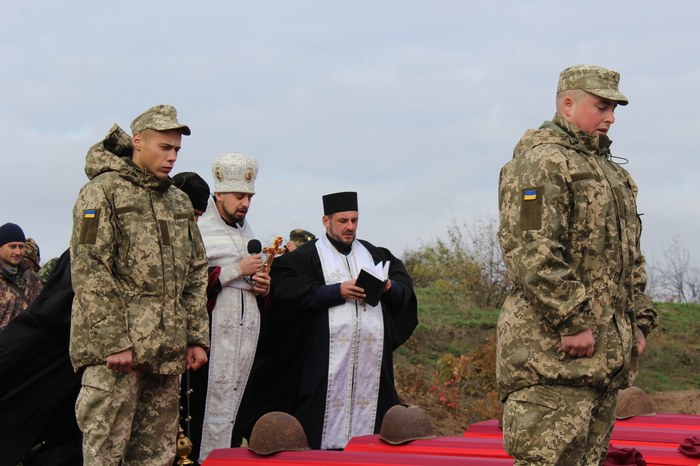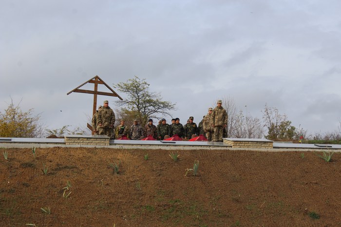 Не забыл наш край их подвиг, ведь в этом году центральным событием стало перезахоронение останков еще сорока воинов, которые погибли при прорыве вражеских позиций. Александр Мордик, председатель Мелитопольского райсовета, почтил их память во время своего выступления, так же поступили и все, выступавшие вслед за ним – Владимир Журавлев (первый заместитель председателя РГА), майор Олег Зайдель (заместитель военкома). Когда настал момент захоронения останков, панихиду по погибшим отслужил благочинный церквей Мелитопольского района УПЦ КП о. Игорь (Маркович).