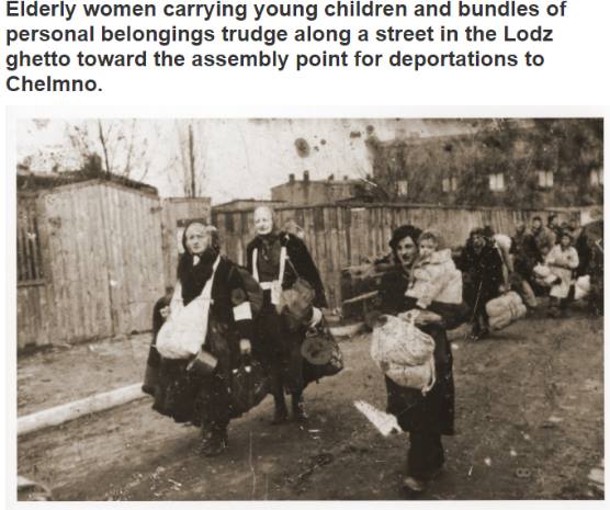 "Пожилые люди держат детей и свертки с пожитками устало идут по гетто на улице Лодзя к точки сбора для депортации в Хелмно (первый нацистский лагерь, - ред.)", - говорится в подписи к оригинальной фото.