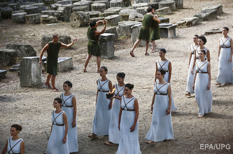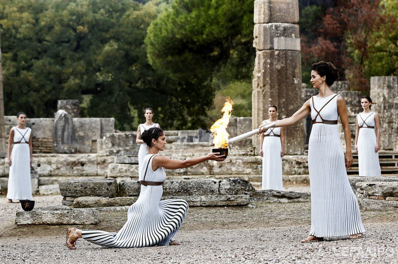 В греческой Олимпии прошла церемония зажжения олимпийского огня, сообщает EPA. По традиции, огонь предстоящей Олимпиады был зажжен на руинах храма Геры от солнечных лучей.