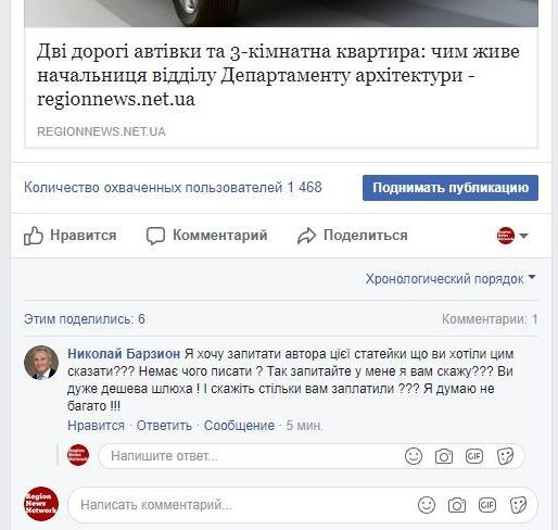 И если сама декларация дочери на первый взгляд не скандальна, но вот реакция депутата оказалась одиозной. Николай Барзион заявив, что имущество он заработал не работая на государственной службе, почему-то начал лично оскорблять автора материала, а также заявлять о «заказном» характере публикации декларации его семьи.