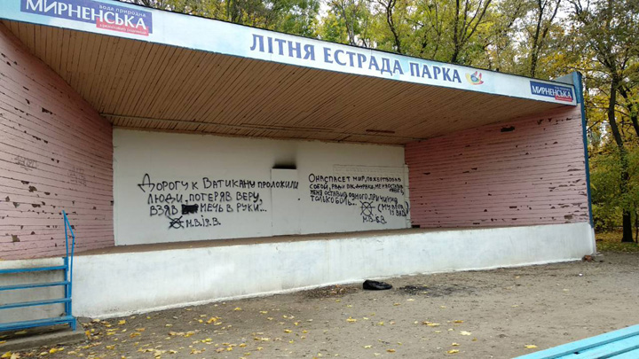 Вандалы испортили летнюю эстраду в городском парке (фото)
