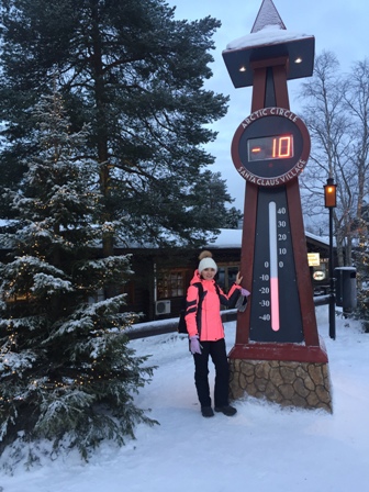 И все же главным событием праздничного новогоднего путешествия стала поездка в официальную резиденцию Санта-Клауса, или Йоулопукки, как его называют финны. Она находится в нескольких километрах от города Рованиеми. Дом Санты выстроен прямо на Полярном круге, о чем свидетельствуют столбы с указанием «Arctic circle». Дом внутри стилизованный, со сказочной атмосферой. Гостей встречает приветливый эльф, который незаметно проносит оплаченные