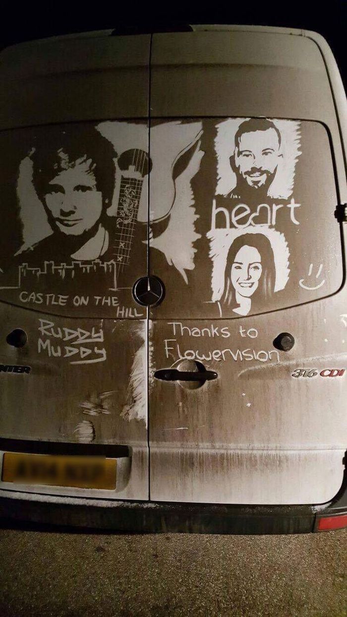 42-летнему Рикки Миннсу надоело видеть надписи "помой меня" и непристойности, которые ему оставляли шутники на грязном авто по доставке цветов. Мужчина начал рисовать собственные картины, и выходит у него чертовски здорово.