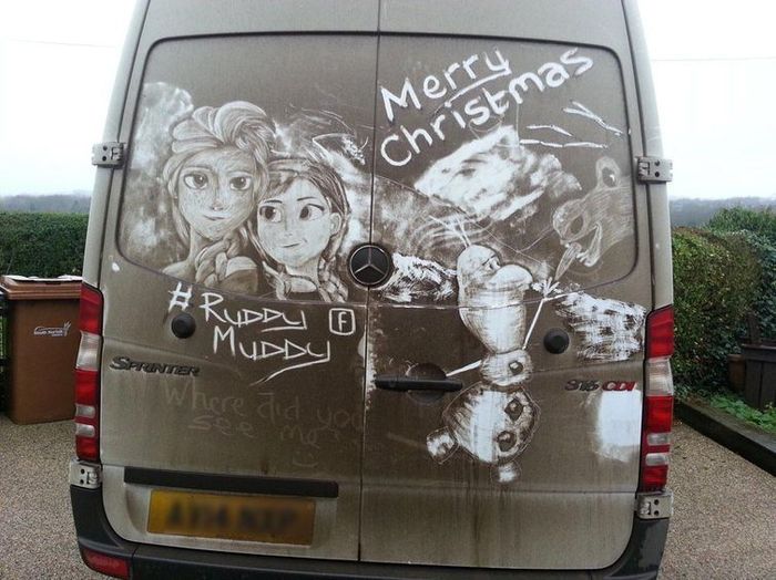Мужчина рисует картины на грязи собственного автомобиля (Фото)